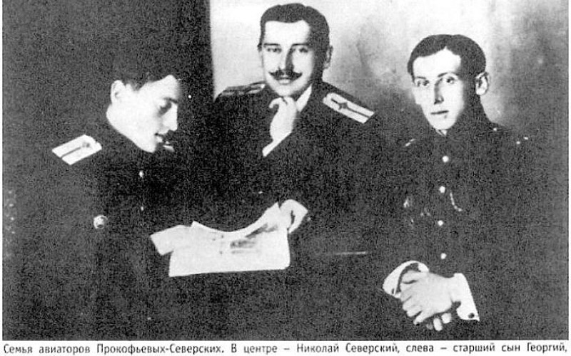 Прим. КиноБлога. Хотя Николай де Северский больше прикипел по жизни к сыну Александру, жизнь в сражениях с Красной Армией ему спас его 2-й сын - Георгий. Вдвоем они смогли покинуть Советскую Россию и эмигрировать в Швецию (см. далее). Он же, Георгий, впоследствии повторил и "песенный" путь отца. А пилотами были/стали все трое.